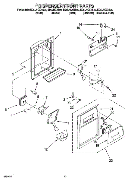 This ice dispenser lever is the white paddle your glass presses to activate the refrigerator's ice dispenser. Replace a cracked or worn lever to restore smooth dispensing and keep the dispenser area looking clean and finished.
