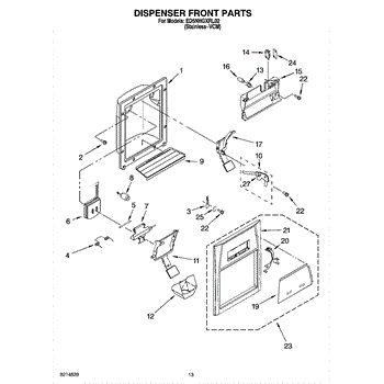The Ice Dispenser Guide is an OEM replacement part for Whirlpool brand refrigerators. These brands also include Maytag, KitchenAid, Norge, Roper, Estate, and Kenmore models. It directs ice from the ice bucket to the dispenser chute. It helps to prevent jams by guiding the ice through the dispenser system smoothly and evenly.