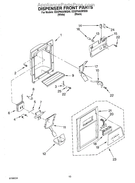 The Dispenser Overflow Grille is an OEM part for Whirlpool refrigerators. This grille sits below the water and ice dispenser on the refrigerator door, catching any spills or overflow to keep the area clean and prevent water from dripping down the refrigerator. For Black order 2206670B, for Bisque order 2206670T
