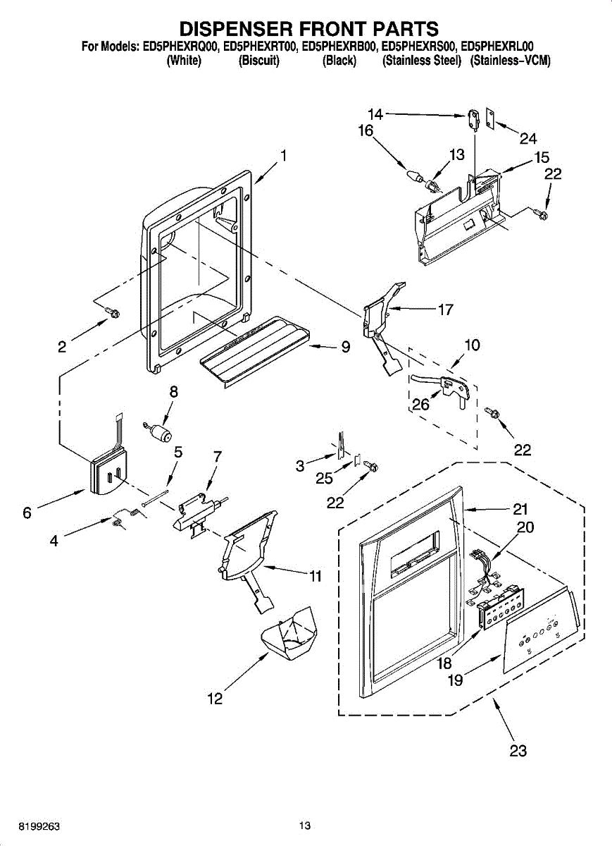 Catches spills from water and ice dispenser. Replace if stained, cracked, or broken. Installs in front dispenser area. Snaps in without tools.