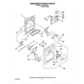 The Dispenser Overflow Grille is an OEM part for Whirlpool refrigerators. It fits in the dispenser area and catches any spills or overflow from the water and ice dispenser, preventing them from dripping onto the floor or into the appliance.