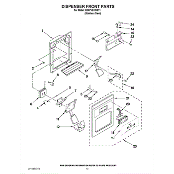 The Dispenser Overflow Grille is an OEM part for Whirlpool refrigerators. It fits in the dispenser area and catches any spills or overflow from the water and ice dispenser, preventing them from dripping onto the floor or into the appliance.