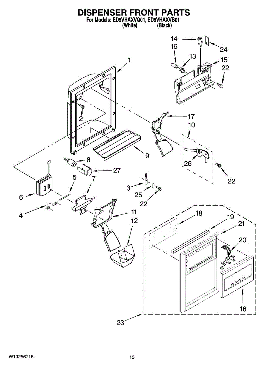 Parts for Whirlpool ED5VHAXVB01: 08 - Dispenser Front Parts