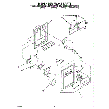 Used to prevent water from overflowing from the dispenser on the freezer door. Color: Biscuit. It measures about 10 inches wide by 3 inches deep. For black order WP2206670B. For white order WP2206670W.