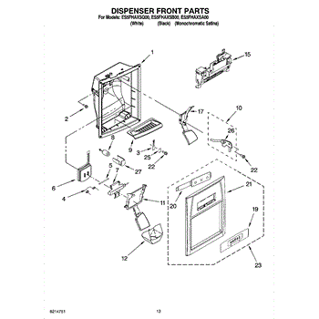 Parts for Whirlpool ES5FHAXSQ00: 08 - Dispenser Front Parts