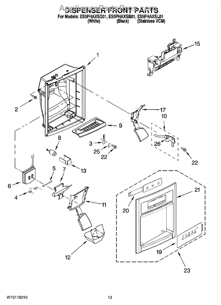 Parts for Whirlpool ES5PHAXSB01: 08 - Dispenser Front Parts