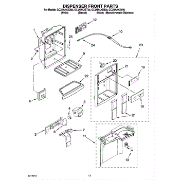 Parts for Whirlpool GC3NHAXSQ00: 08 - Dispenser Front Parts