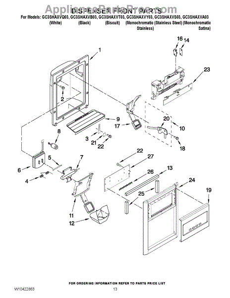 Used to prevent water from overflowing from the dispenser on the freezer door. Color: Biscuit. It measures about 10 inches wide by 3 inches deep. For black order WP2206670B. For white order WP2206670W.