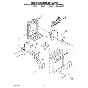 The Dispenser Overflow Grille is an OEM part for Whirlpool refrigerators. This grille sits below the water and ice dispenser on the refrigerator door, catching any spills or overflow to keep the area clean and prevent water from dripping down the refrigerator. For Black order 2206670B, for Bisque order 2206670T
