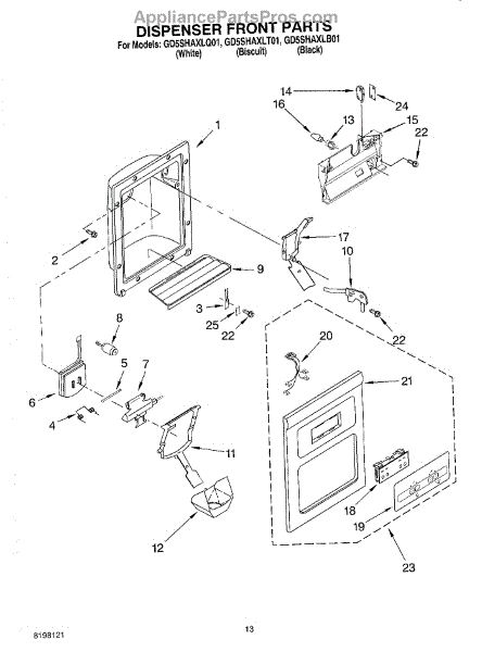 The Dispenser Overflow Grille is an OEM part for Whirlpool refrigerators. This grille sits below the water and ice dispenser on the refrigerator door, catching any spills or overflow to keep the area clean and prevent water from dripping down the refrigerator. For Black order 2206670B, for Bisque order 2206670T