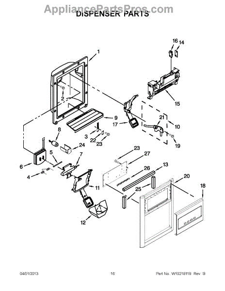 Used to prevent water from overflowing from the dispenser on the freezer door. Color: Biscuit. It measures about 10 inches wide by 3 inches deep. For black order WP2206670B. For white order WP2206670W.