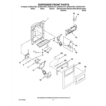 The Dispenser Overflow Grille is an OEM part for Whirlpool refrigerators. This grille sits below the water and ice dispenser on the refrigerator door, catching any spills or overflow to keep the area clean and prevent water from dripping down the refrigerator. For Black order 2206670B, for Bisque order 2206670T