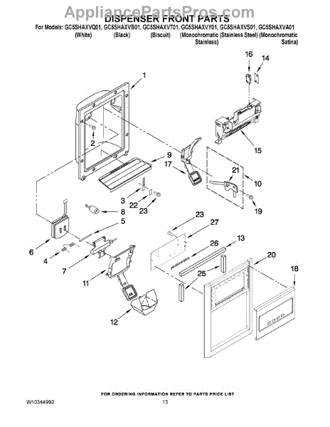 Used to prevent water from overflowing from the dispenser on the freezer door. Color: Biscuit. It measures about 10 inches wide by 3 inches deep. For black order WP2206670B. For white order WP2206670W.
