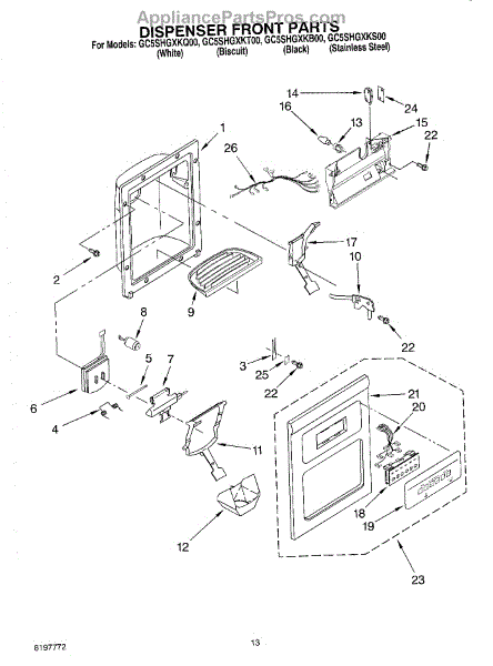 Parts for Whirlpool GC5SHGXKS00: 08 - Dispenser Front Parts