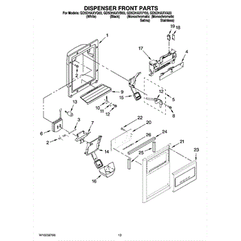 Parts for Whirlpool GD5DHAXVY03: 08 - Dispenser Front Parts