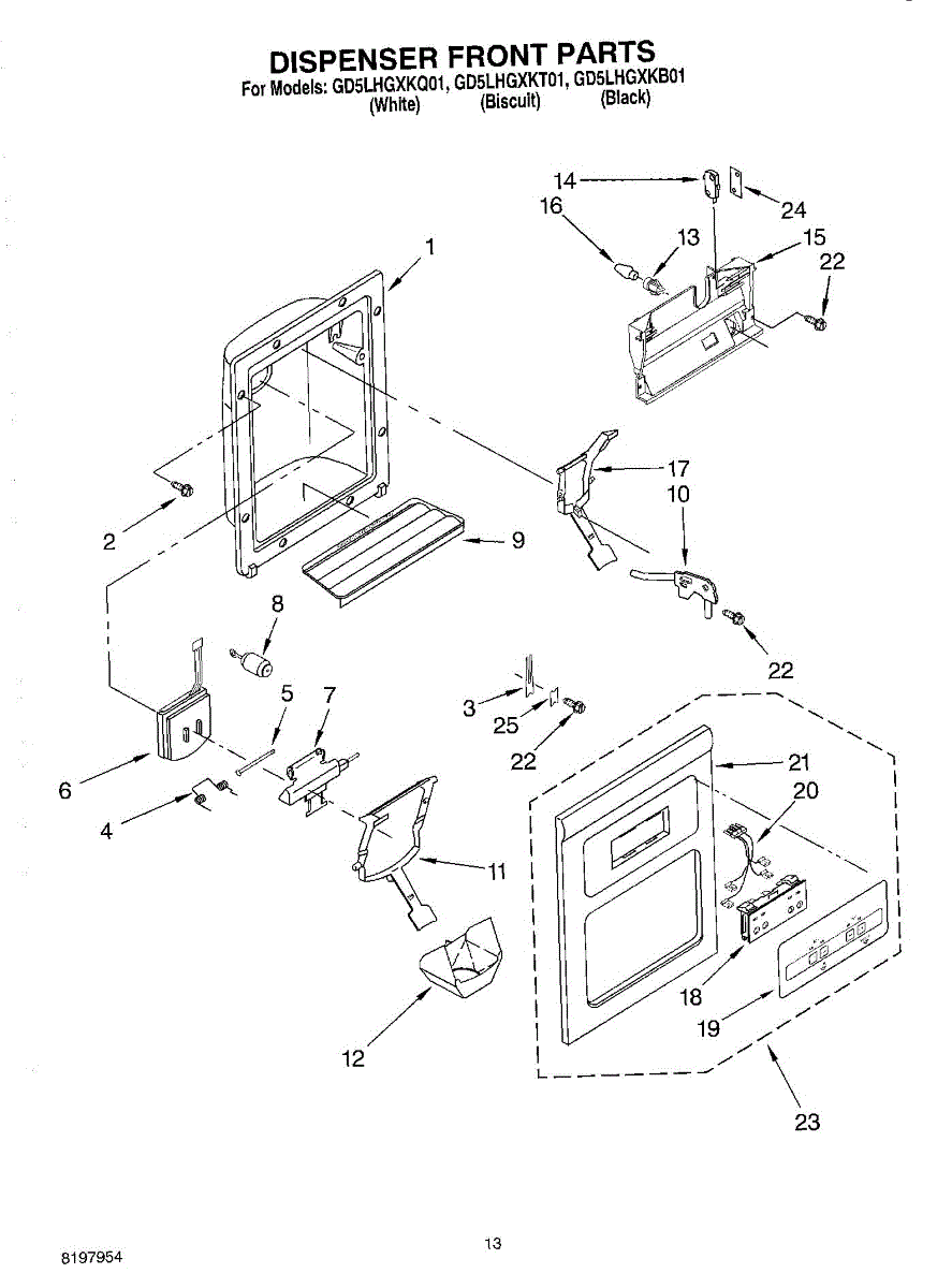 The Dispenser Overflow Grille is an OEM part for Whirlpool refrigerators. This grille sits below the water and ice dispenser on the refrigerator door, catching any spills or overflow to keep the area clean and prevent water from dripping down the refrigerator. For Black order 2206670B, for Bisque order 2206670T