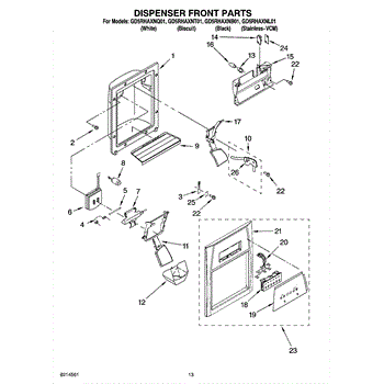 Parts for Whirlpool GD5RHAXNB01: 08 - Dispenser Front Parts