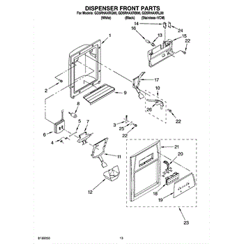 Parts for Whirlpool GD5RHAXRB00: 08 - Dispenser Front Parts