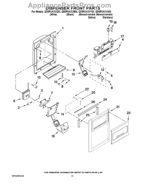 Parts for Whirlpool GD5RVAXVA03: 08 - Dispenser Front Parts