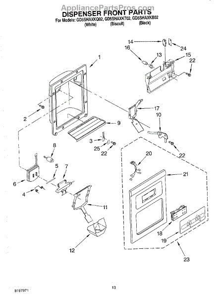 The Dispenser Overflow Grille is an OEM part for Whirlpool refrigerators. This grille sits below the water and ice dispenser on the refrigerator door, catching any spills or overflow to keep the area clean and prevent water from dripping down the refrigerator. For Black order 2206670B, for Bisque order 2206670T
