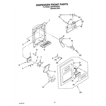 The Ice Dispenser Lever is an OEM component specifically designed for Whirlpool side-by-side refrigerators with built-in ice dispensers. Located inside the ice and water compartment, the lever is responsible for releasing cubed or crushed ice when engaged. Symptoms of a bad ice dispenser lever include: