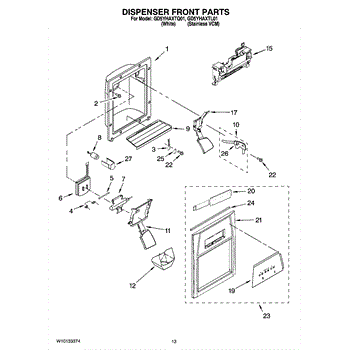 The Dispenser Overflow Grille is an OEM part for Whirlpool refrigerators. It fits in the dispenser area and catches any spills or overflow from the water and ice dispenser, preventing them from dripping onto the floor or into the appliance.