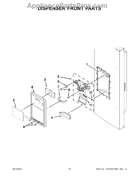 Parts for Whirlpool GI0FSAXVB08: 08 - Dispenser Front Parts