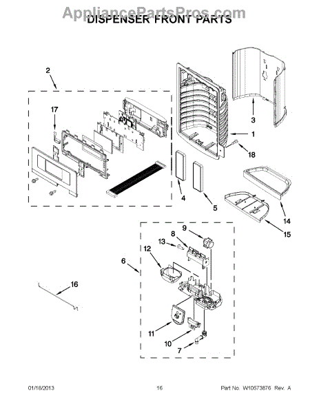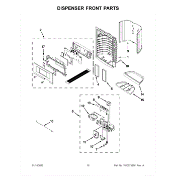 This dispenser separator assembly forms the interior of the refrigerator's ice/water dispensing area. It guides ice and water into your glass and helps seal the chute to limit warm air intrusion, drips, and frost at the opening.