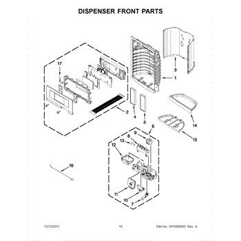 This dispenser separator assembly forms the interior of the refrigerator's ice/water dispensing area. It guides ice and water into your glass and helps seal the chute to limit warm air intrusion, drips, and frost at the opening.