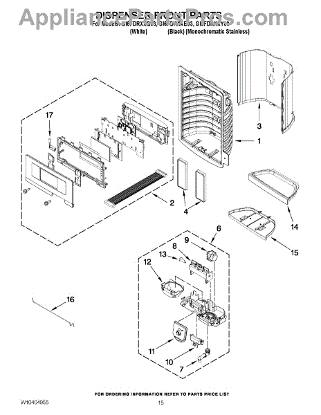 Parts for Whirlpool GI6FDRXXY03: 08 - Dispenser Front Parts