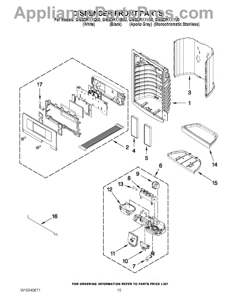 Parts for Whirlpool GI6SDRXXQ00: 08 - Dispenser Front Parts