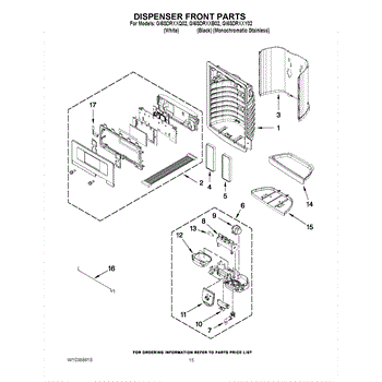 This dispenser separator assembly forms the interior of the refrigerator's ice/water dispensing area. It guides ice and water into your glass and helps seal the chute to limit warm air intrusion, drips, and frost at the opening.