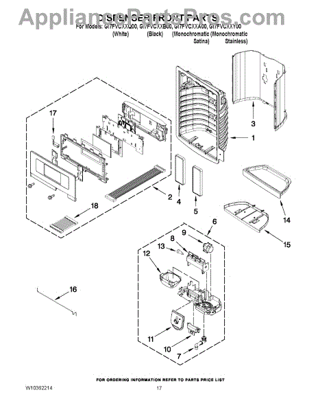 Parts for Whirlpool GI7FVCXXQ00: 09 - Dispenser Front Parts