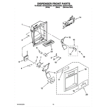 Parts for Whirlpool GS2SHAXSQ03: 08 - Dispenser Front Parts