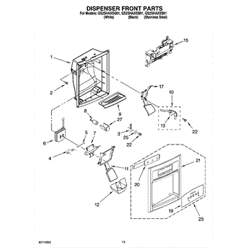 Parts for Whirlpool GS2SHAXSS01: 08 - Dispenser Front Parts