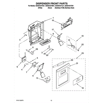 Parts for Whirlpool GS5SHAXTS01: 08 - Dispenser Front Parts