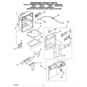 Parts for Whirlpool GS6NBEXRS01: 08 - Dispenser Front Parts