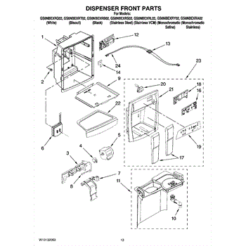 Parts for Whirlpool GS6NBEXRS02: 08 - Dispenser Front Parts