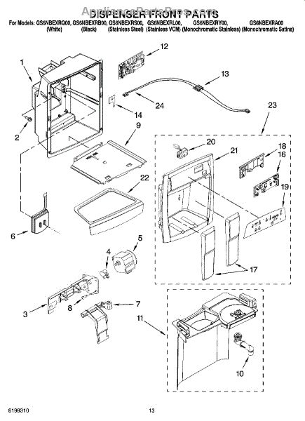 Parts for Whirlpool GS6NBEXRY00: 08 - Dispenser Front Parts