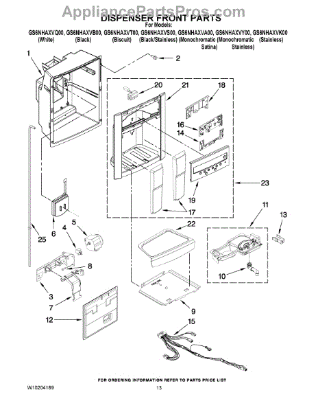 Parts for Whirlpool GS6NHAXVY00: 08 - Dispenser Front Parts