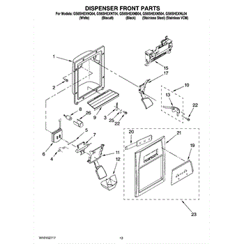 Parts for Whirlpool GS6SHEXNS04: 08 - Dispenser Front Parts