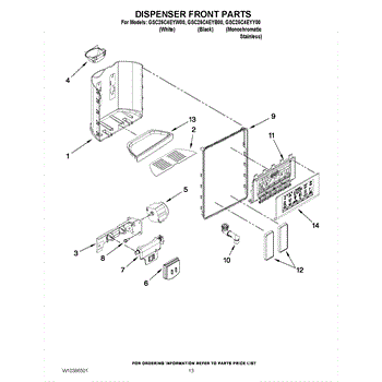 This ice door covers the dispenser chute to help keep cold air in and prevent spills when the ice dispenser is not in use. Replaces a cracked, bent, or non-sealing chute door to restore normal dispenser operation. What it does: