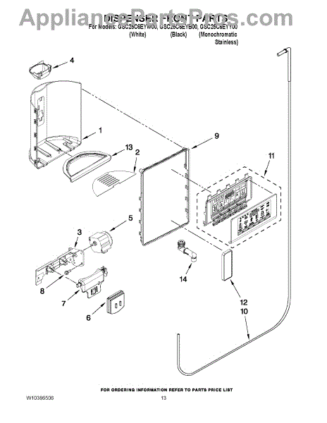 Parts for Whirlpool GSC25C6EYY00: 08 - Dispenser Front Parts