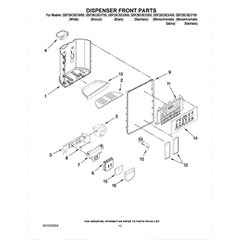 Parts for Whirlpool GSF26C5EXA00: 08 - Dispenser Front Parts