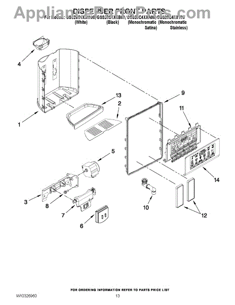 Parts for Whirlpool GSS26C4XXY00: 08 - Dispenser Front Parts