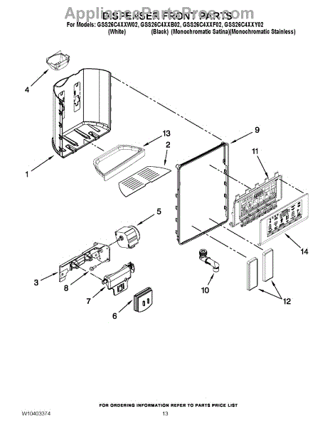 Parts for Whirlpool GSS26C4XXY02: 08 - Dispenser Front Parts