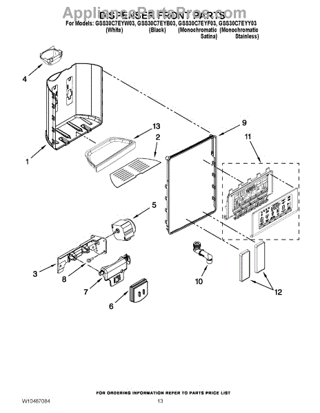 Parts for Whirlpool GSS30C7EYW03: 08 - Dispenser Front Parts