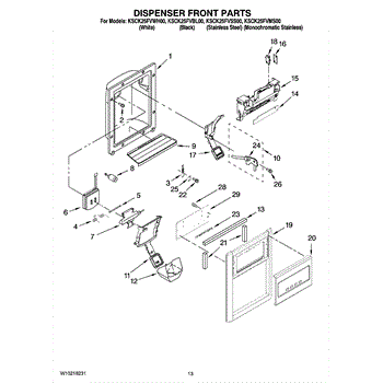 The Ice Dispenser Lever is an OEM component specifically designed for Whirlpool side-by-side refrigerators with built-in ice dispensers. Located inside the ice and water compartment, the lever is responsible for releasing cubed or crushed ice when engaged. Symptoms of a bad ice dispenser lever include: