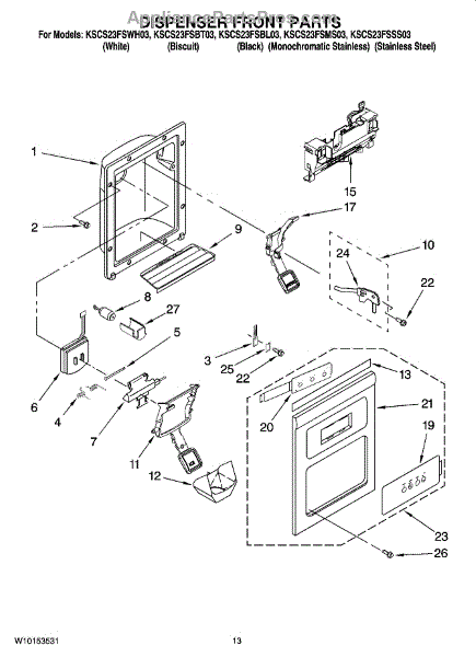 Parts for Kitchenaid KSCS23FSBL03: 08 - Dispenser Front Parts