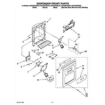 Parts for Kitchenaid KSCS25FSBT03: 08 - Dispenser Front Parts